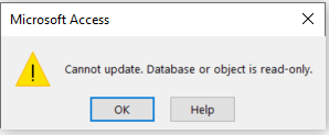 - The accdb was recently downloaded from an internet site and has had the MOWB added to it. Or, and this is more likely, it is marked as Read-Only because it was downloaded from somewhere.