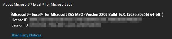 Click File> Account, please take a screenshot including Subscription Product and About Excel.