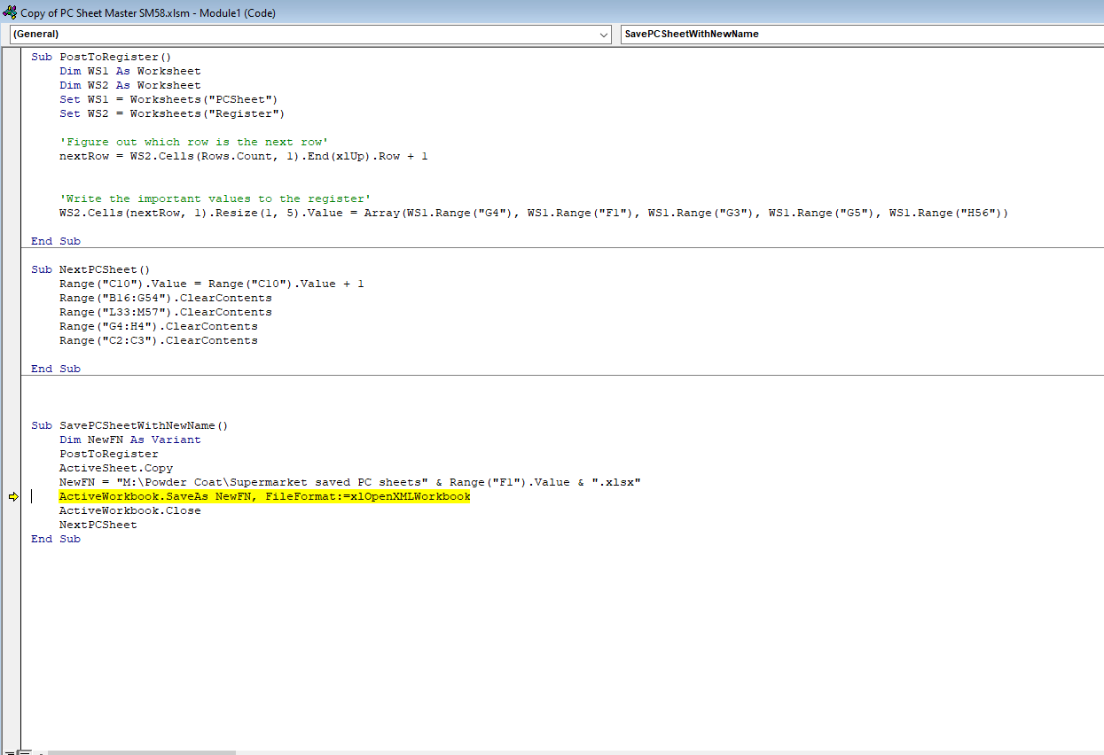 NewFN = "M:\Powder Coat\Supermarket saved PC sheets" & Range("F1").Value & ".xlsm"