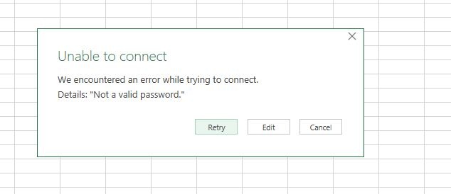 The error that I got was when I import the password protected access from the Excel.