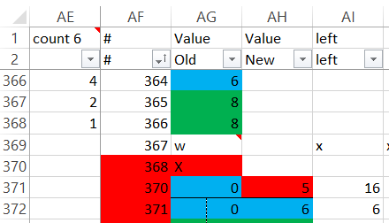- That number starting from 367 in AF column didn’t exist at first, I add them and use “exclude value greater than 367” so they don’t get sorted together with the data