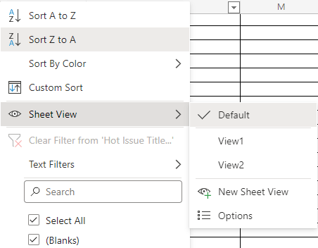 For reference: Create and manage Sheet Views in Excel (microsoft.com)