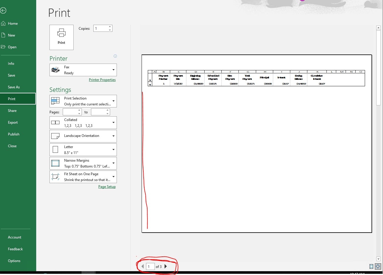 I tested on my end by selecting the rows that I want to print and I go to print and then Set Print Area, then select Print, Unfortunately, I was able to duplicate the same situation like yours as you can see:
