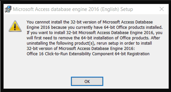 Microsoft Access Database Engine 2016 will not install - Microsoft Community