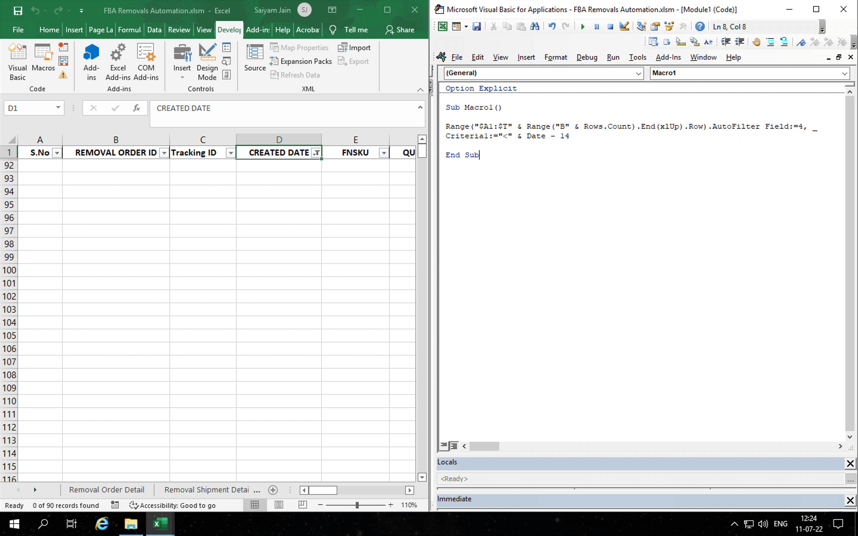 I have a dataset in which I have a date column which i want to filter and the basis of that filter is "is before or equal to for today i.e. in vba date -14" and this filter is not working properly. I also try to store this value in a variable and then i tried to use it filter but nothing works.
