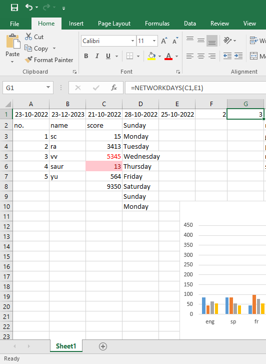 NETWORKDAYS includes both the start date and end date in the count, if they are not weekend days.