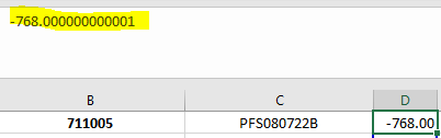 Unfortunately I am not authorized using another site but please see below. I have pasted the data and the one highlighted (at the bottom) when copied into a new worksheet will be shown as 768.000000000001.