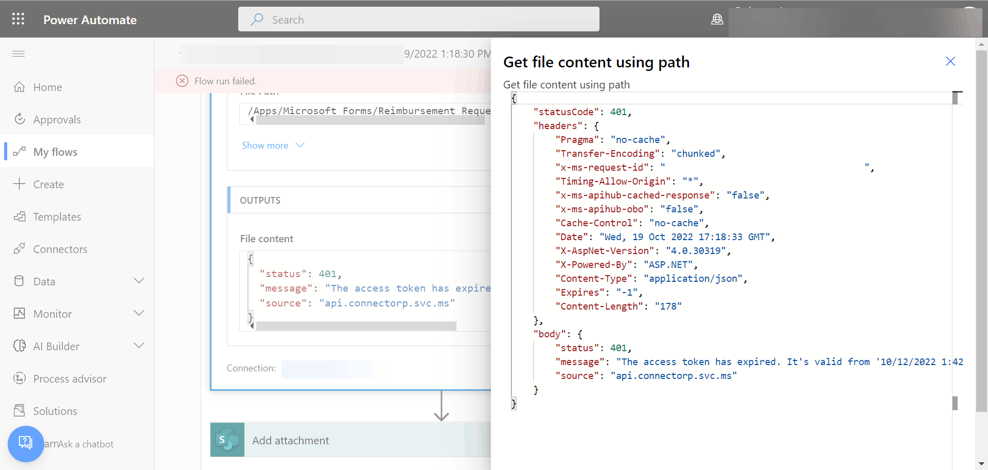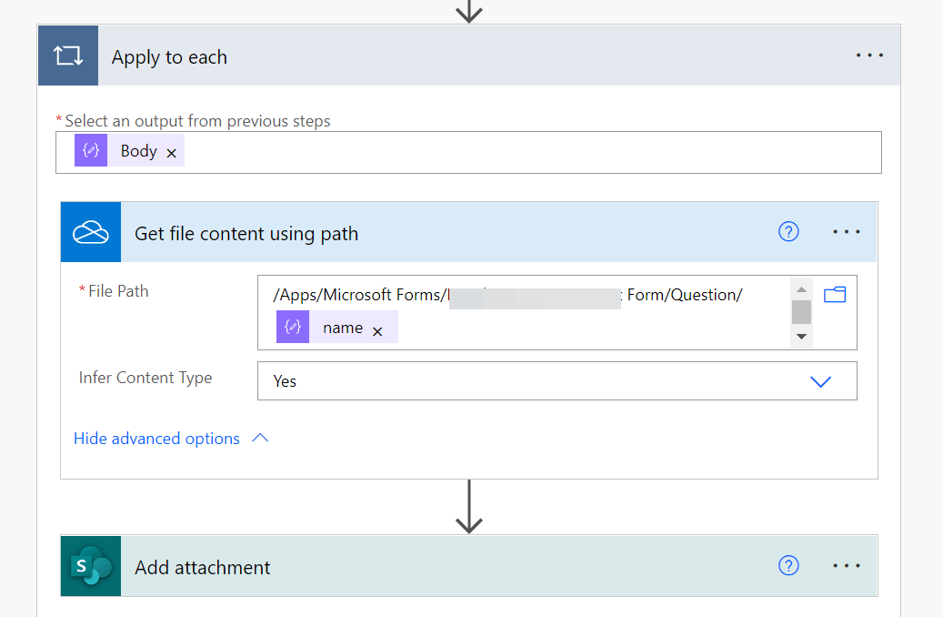 Meanwhile, I suggest you use Get file content instead of Get file content using path to do a test with a new submission of the form to see and let us know the result as well.