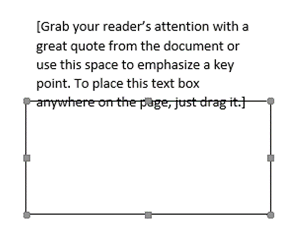 - delete the text box, Click on insert> select the drop-down arrow on the text box and select More text boxes from office.com> select text box with the name Element Quote: this is more centralized.