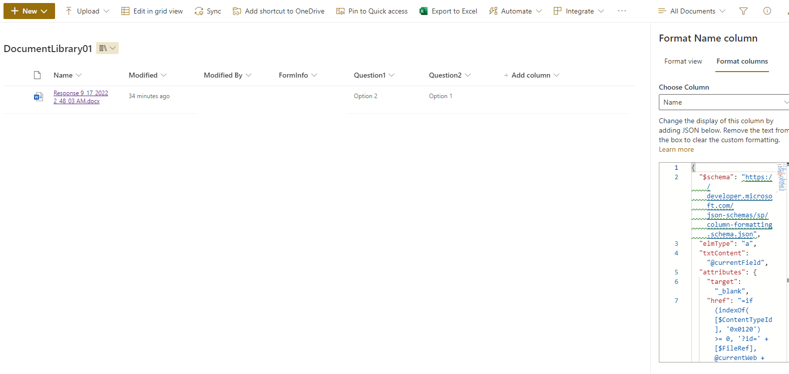 { "$schema": "https://developer.microsoft.com/json-schemas/sp/column-formatting.schema.json","elmType": "a","txtContent": "@currentField","attributes": {"target": "_blank","href": "=if(indexOf([$ContentTypeId], '0x0120') >= 0, '?id=' + [$FileRef], @currentWeb + '/_layouts/15/Doc.aspx?sourcedoc='+ [$UniqueId] + '&action=interactivepreview')"}}