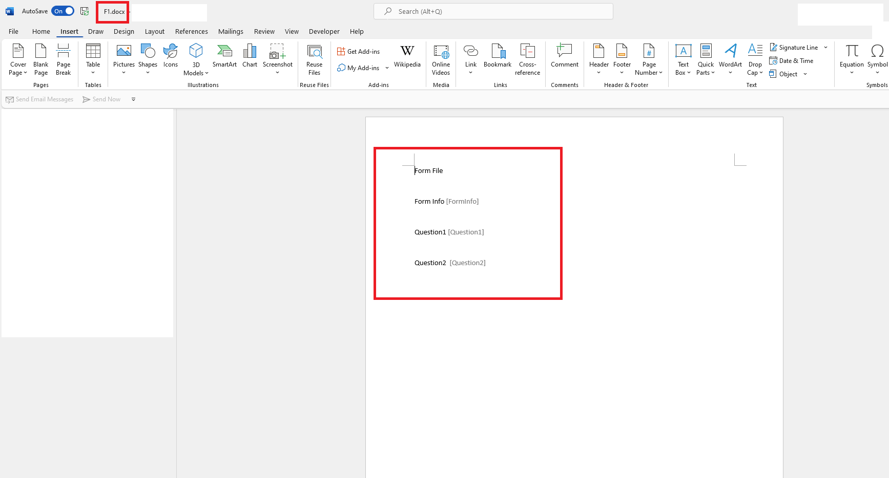 For the created file showed in Word for the web, the embedded property values may not be showed in Word for the web directly but it is showed in the Preview mode.