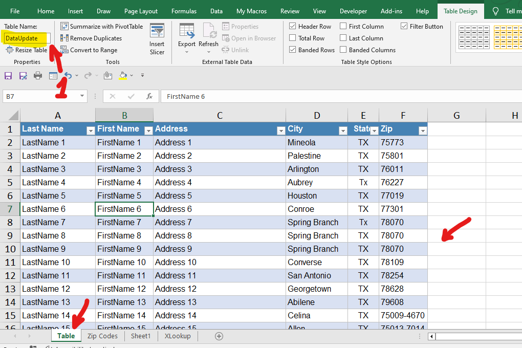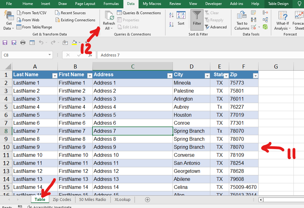 11 and 12) Replace the sample data with your real info and REFRESH the Query