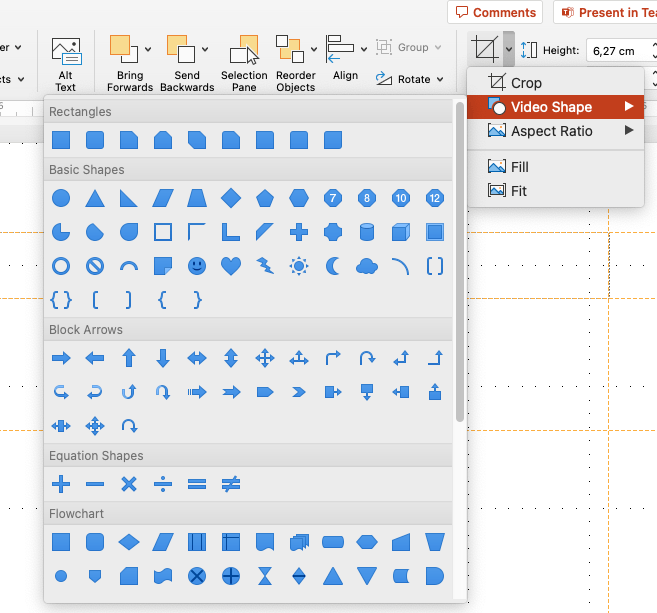 - Select your custom shape and bring it to front, then move it atop the rectangle and video so it sits over the part of the video you want to crop to.