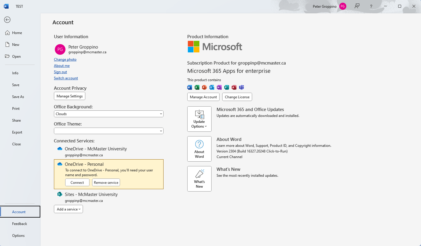 - The screenshot version information of Word you are using (File - Account - version information)
