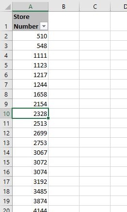 Switch to the other tab and select the range of store numbers (including the header in A1).