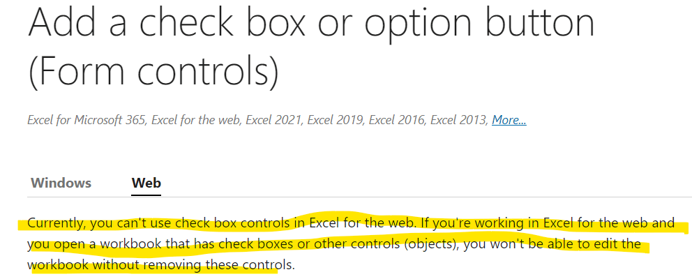 For your reference: Add a check box or option button (Form controls) - Microsoft Support