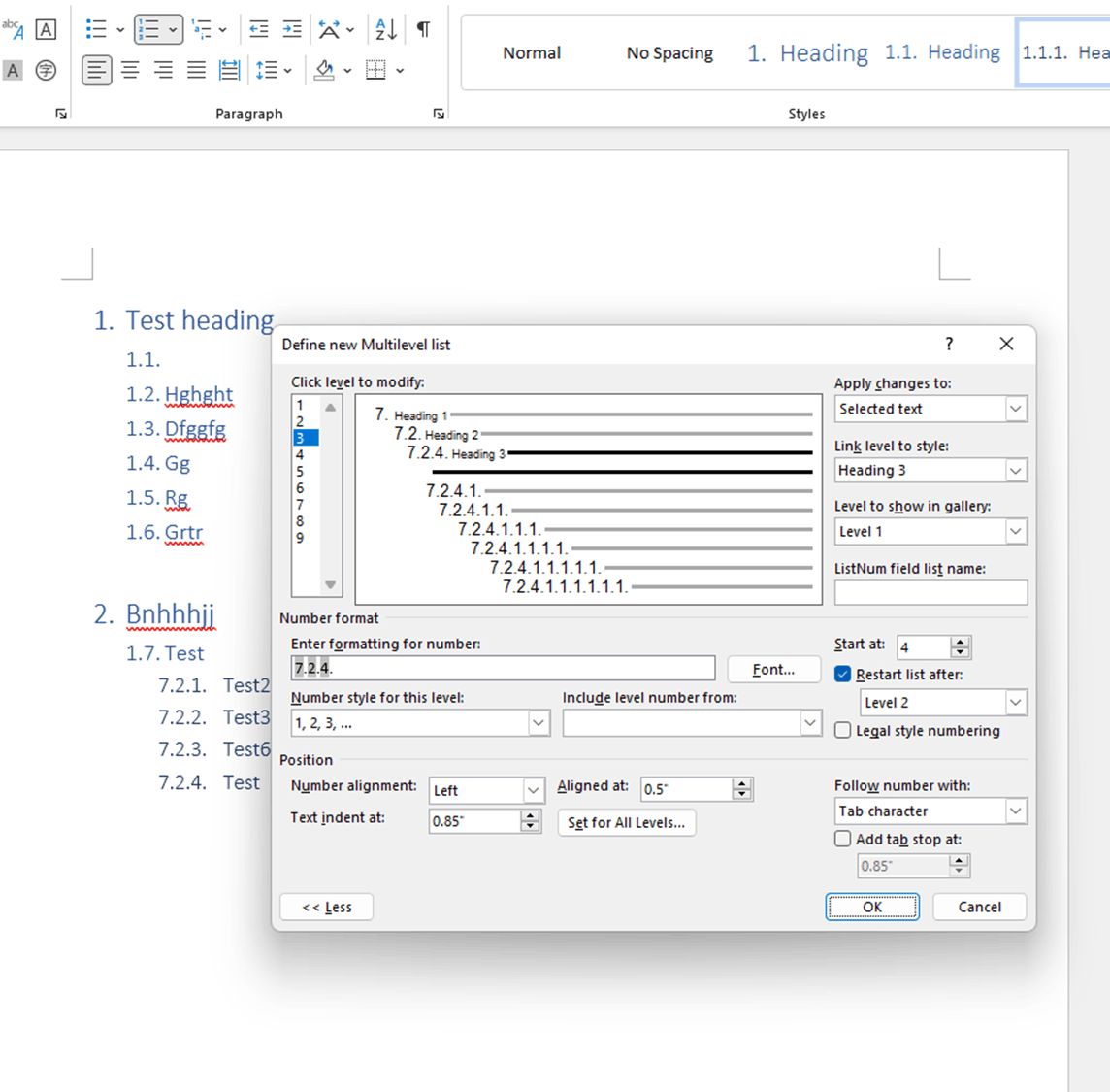 If you want, I can provide links to videos demonstrating setting up numbering linked to styles.