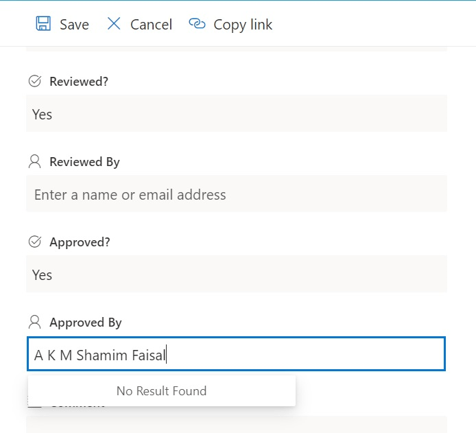 Per your description, you have a Person or Group column in a SharePoint list, the column returns no result found when a name or email address is searched for.