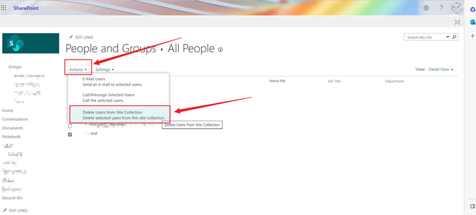 - Select your non-existent users on the site, , click on actions, delete users from site collection.