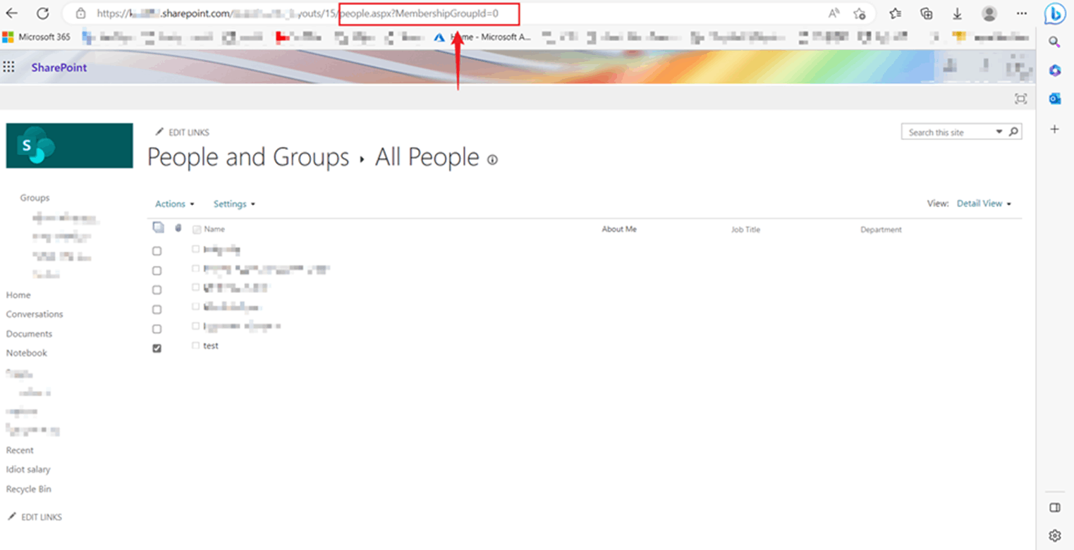 - Please add (/_layouts/15/people.aspx?MembershipGroupId=0) to end of your SharePoint URL.