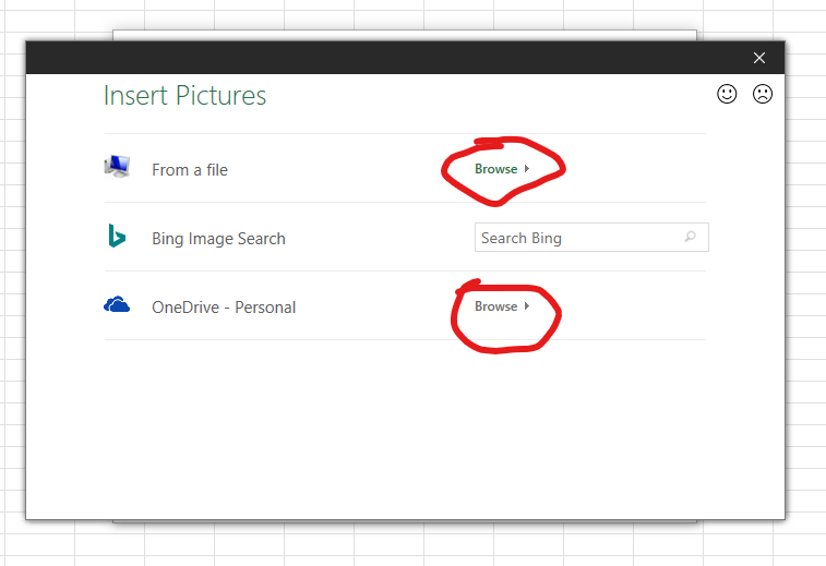 Based on your description, when you clicked the Browse button in the Insert Pictures window, there was no response. I tested it on my side, and the result was the same as yours.
