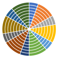 That means the smaller segments shows the original data and the larger segments shows the difference to the size.