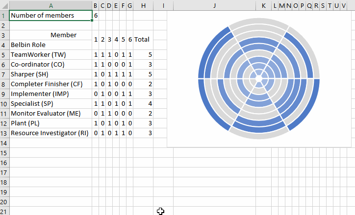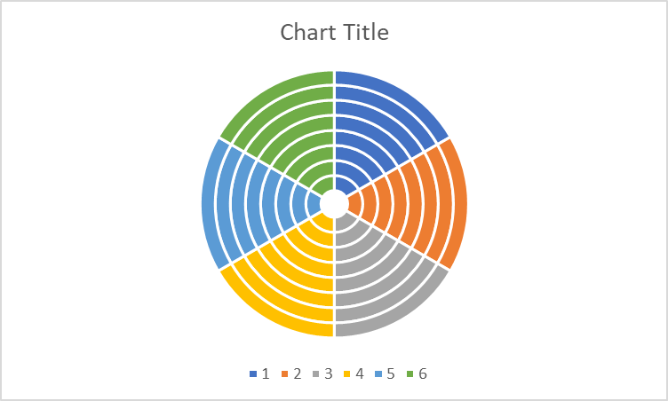 If we overwrite the original data with 1 each and set the size to 3 and create a chart from our data area it looks like this: