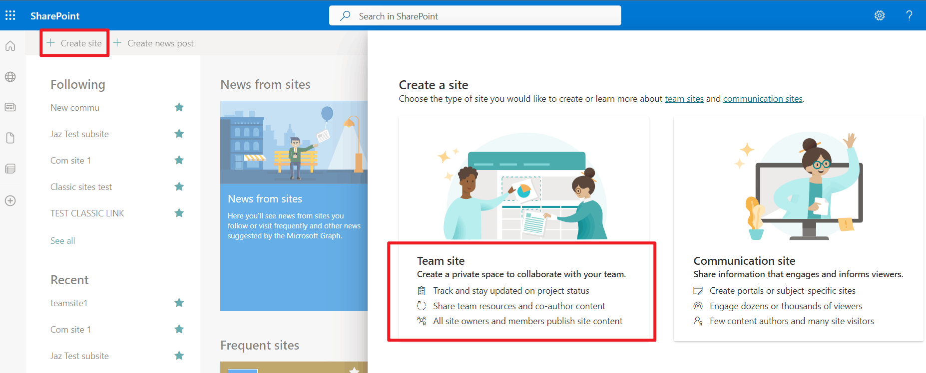 A SharePoint team site connects you and your team to shared content and resources. Use team sites to store and collaborate on files or to create and manage lists of information as well as: