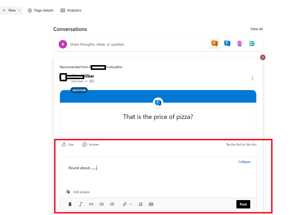 One there is built- in Discussion Board app (list), you may try adding the Discussion Board app via go to site content> click on setting>Add an app to the site can join the discussion.
