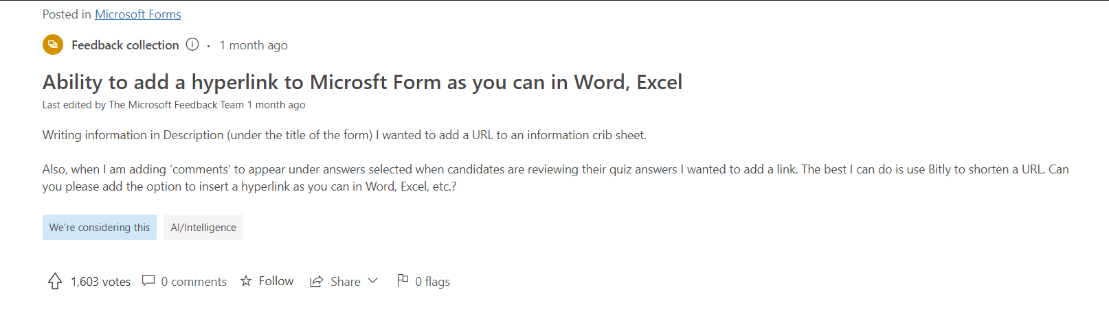Given this situation, I do understand the inconvenience and apologize for it. Many members have voted this UserVoice for this feature(Ability to add a hyperlink to Microsft Form as you can in Word, Excel · Community (microsoft.com)) and the related team has already noticed this requirement for a large number of users. Let's look forward it together.