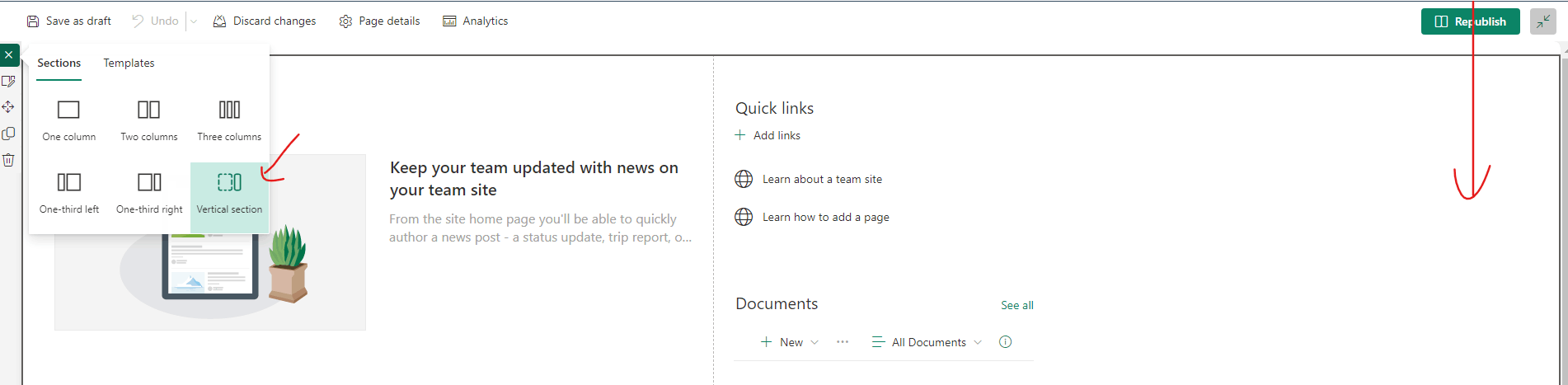 For your reference: Add sections and columns on a SharePoint modern page - Microsoft Support