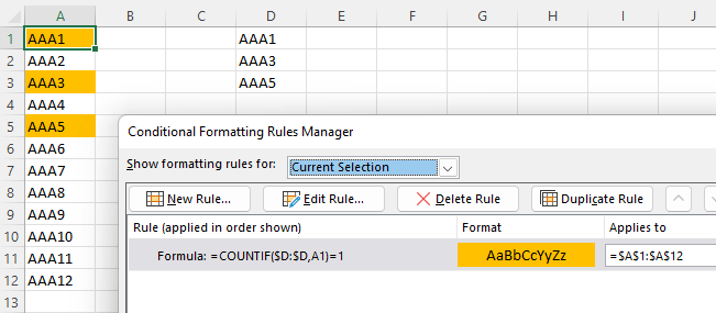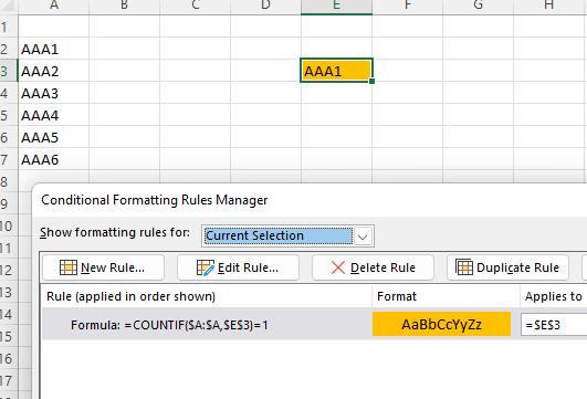 If AAA1 or AAA3 or AAA6 are in column 1 then apply format