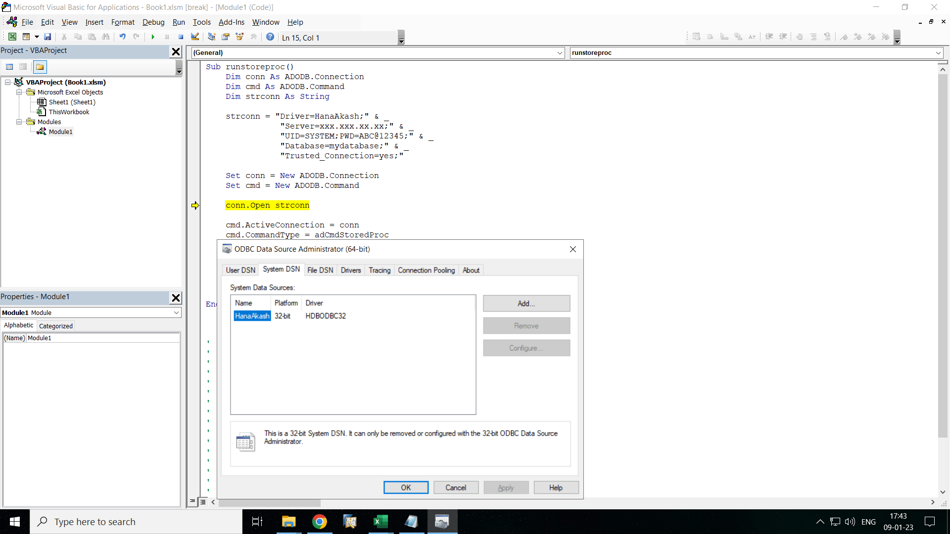 strconn = "Driver=HanaAkash;" & "Server=xxx.xxx.xx.xx;" & "UID=SYSTEM;PWD=ABC@12345;" & "Database=mydatabase;" & "Trusted_Connection=yes;"