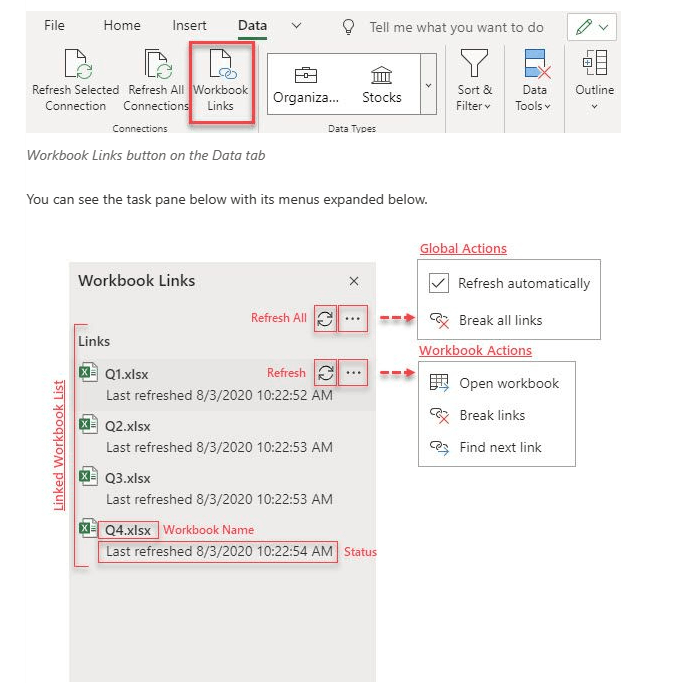 I am currently testing some linking between workbooks to funnel data to different teams. The linking is working, however the data is not being updated on the destination workbook when modified in the source workbook. It also doesn't update when doing the Refresh all function.
