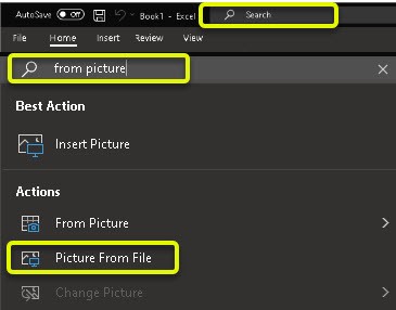 I have the same issue. There's no "From Picture" option in my Excel, which is an Enterprise version. Could it be that our IT admin disabled it?