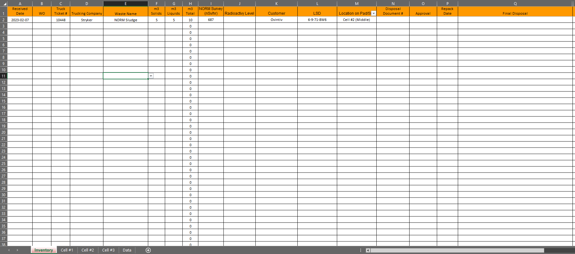 Create named ranges for the data in the "Inventory" tab. Create a data validation drop-down list in the "Location on Pad/Site" cell, referencing the named ranges. Use the VLOOKUP function to retrieve the data from the "Inventory" tab based on the selection in the "Location on Pad/Site" cell. Use the IF function to check if a specific selection is made in the "Final Disposal" cell, and if so, clear the data in the tables. Use conditional formatting to highlight the selected table based on the selection in the "Location on Pad/Site" cell.