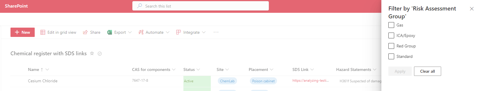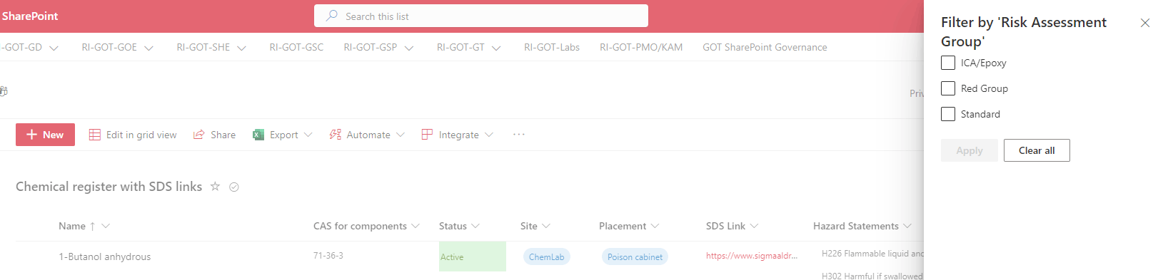 We are have a SharePoint list with around 500 items. We have a mix of text and choice columns. When opening the list we can filter on the text columns and find all items on the list. The issue is with the choice columns as they only shows the choices used in the first part of the list, not all the used choices on the list. For example we have also used the choice "Gas" in the column 'Risk Assessement Group', but it is only visible, if I scroll further down in the list.