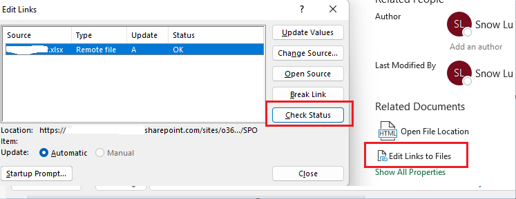 in my shared excel, data is not updating from the linked excel, showing error in my shared excel like this. "UNABLE TO REFRESH We couldn't get updated values from a linked workbook."