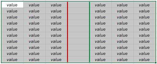 In the screenshot below, the active cell is in the contiguous range on the right, outlined in green. The rows of that range will stay together when you sort. The range on the left, outlined in red, will not be sorted with the range on the right, so any connection between the two ranges will be lost.