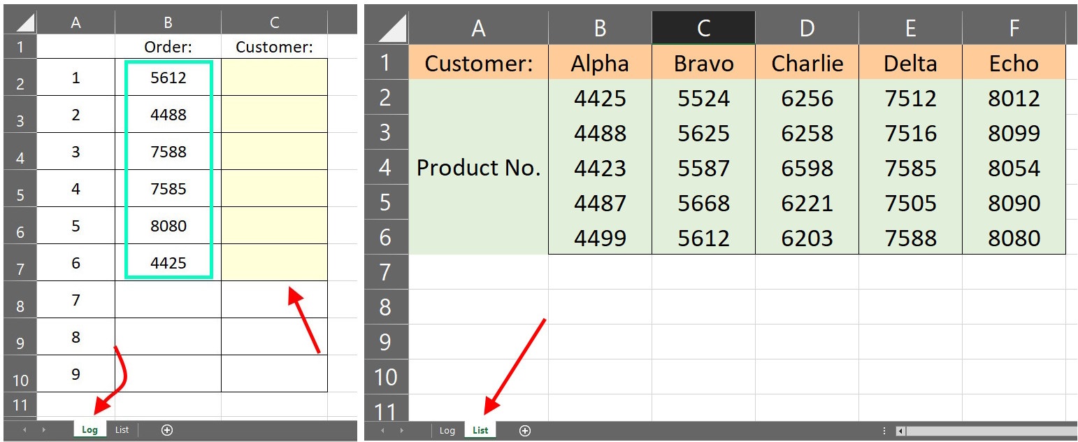 I have a list of my Customers and the product numbers that are always unique but totally random,