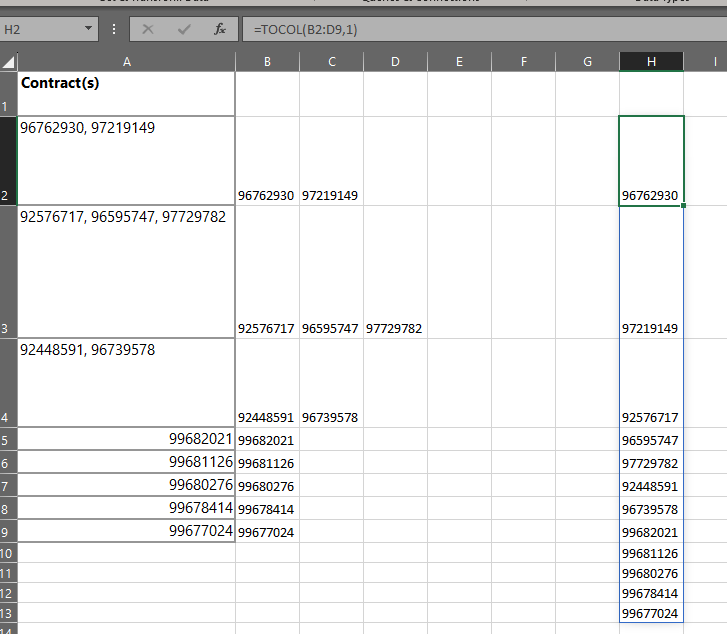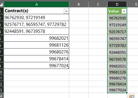 Hey guys I want to see if there's a way to move these multiple numbers below to its own cell, without copying and pasting each one.