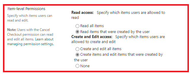 If yes, the default item-level permission can only let users see their own created items but can't disable their ability to edit the items.