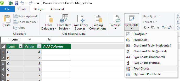 In Power Pivot you can create multiple charts even without a visible Pivot table in the sheet!