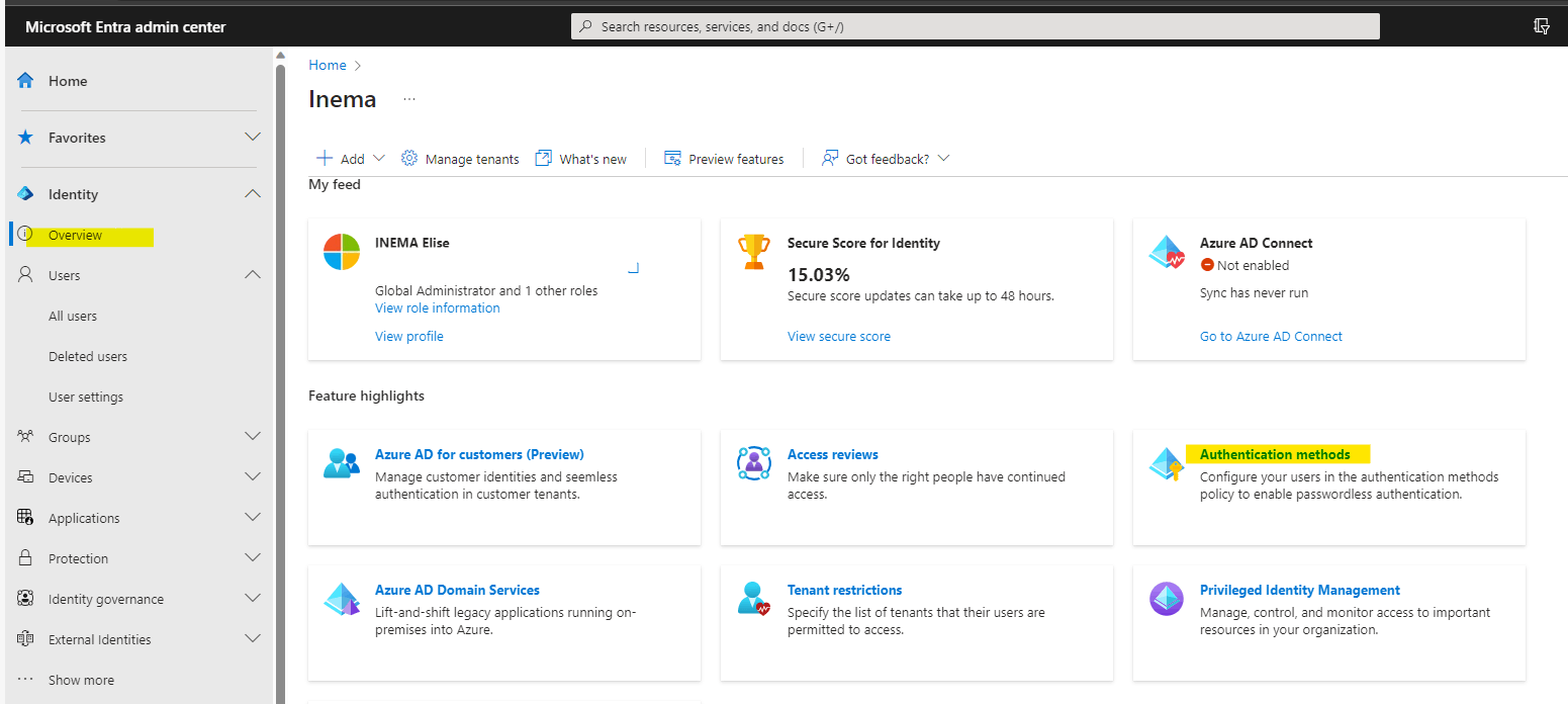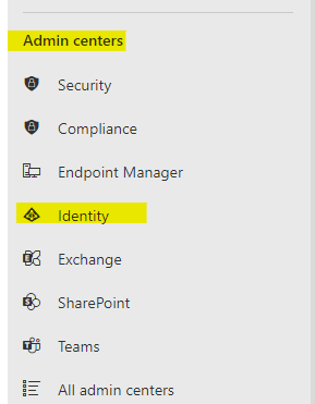- Sign into the Microsoft 365 admin center (https://admin.microsoft.com/) with your admin credentials-->Show All-->choose Identity under Admin centers