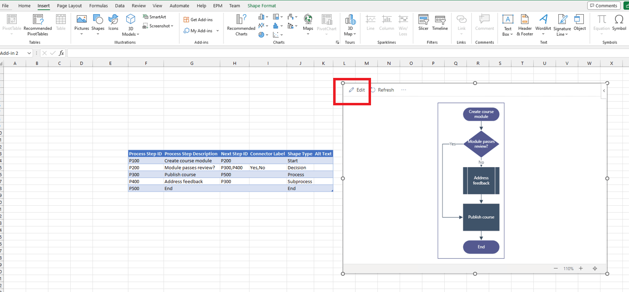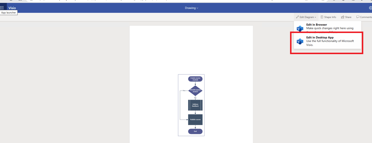 In Excel click on Edit button, it will create a Visio file into your OneDrive> Visio Data Visualizer folder location.