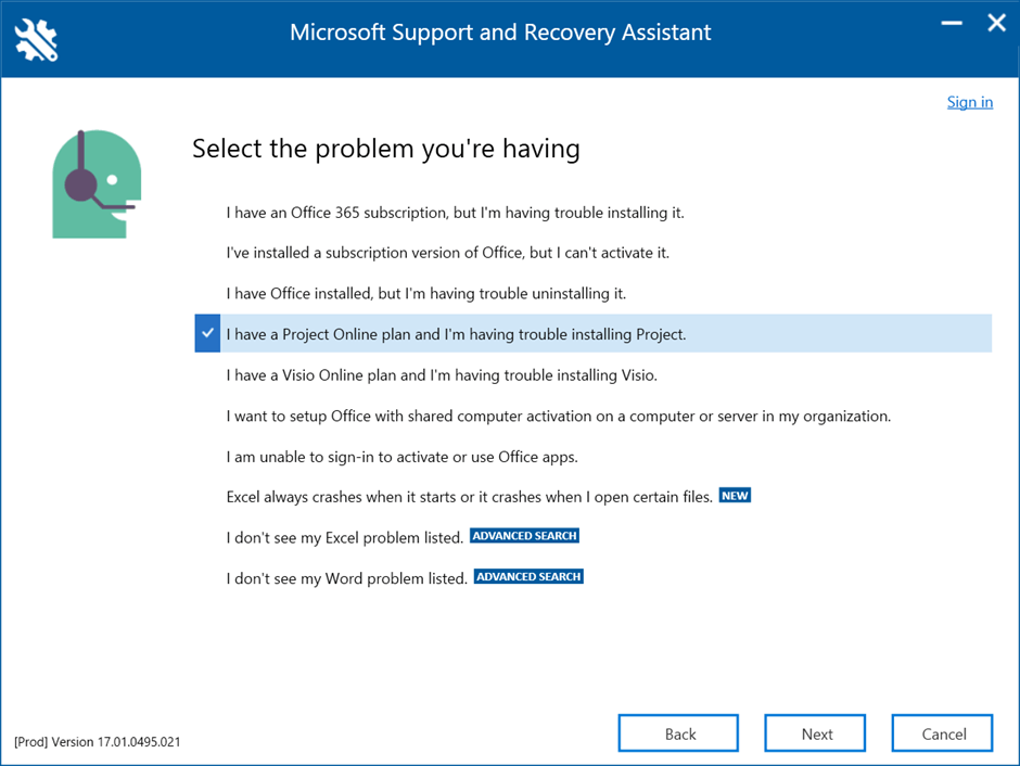 If still the same, please download and install the Microsoft SARA tool and troubleshoot the Project installation issue, reference: About the Microsoft Support and Recovery Assistant - Microsoft Support