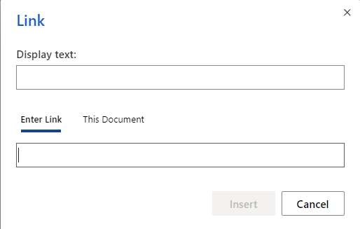 You can put a short title in the Display Text box if you don't want the link in the document to show the full URL. Otherwise, it can be left blank.