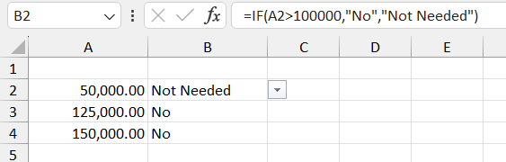 There are two things that you are trying to do. The first is to have No or Not Needed appear in the cell and the second is to have an available dropdown for the analyst to change it. These two will have to be done in separate operations.
