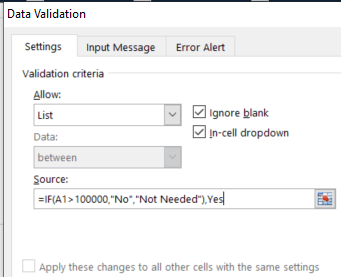 The Analyst will be able to override the formula and enter Yes when they have entered their comment. The drawback, that sheet code might be able to correct, is that when the Analyst enters Yes in the cell the formula will be overwritten and deleted. You currently have the macro to reset the sheet to No, so you should be able to revise that macro to put the formulas back in place to reset the form.