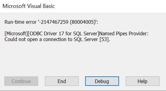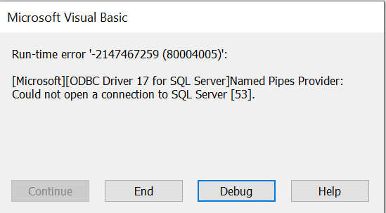 George Hepworth 22,220 Reputation points Volunteer Moderator2023-07-11T16:09:02+00:00 You posted a screen shot of an error message, stating that a connection can't be opened. You follow with the statement that "This odbc connection works connecting to sql server 2019".